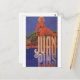 Wunderschönes Vintage Poster für die französische Riviera Juan les Buttons Antibes. Fun Retro Design mit Mädchen in Badeanzug am Strand.