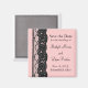 Einer der neuesten Trends in Mode und Design ist Spitzen. Es wird hier in einer schicken, neuen und modernen Art und Weise gezeigt. Dieses Magnet zum Speichern des Datums ist Teil einer kompletten Hochzeitskollektion und ist in anderen Farbkombinationen erhältlich. Hinweis; Spitze ist eine Foto-Abbildung.