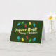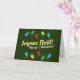 Französische Weihnachtskarte mit Weihnachtsbeleuchtung. Es sagt frohe Weihnachten auf Französisch und Englisch.