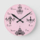 Klassische Pariser inspirierte Uhr. Rosa Streifen mit Cameo Kronleuchtern.