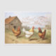 Eine schöne idyllische Szene mit drei Hühnern mit einem Bauernhaus und Vintager französischer Karte Postale und Poststempel im Hintergrund. Ideal für decoupage Projekte.