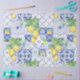 Klassisches, französisches Landdesign mit handbemalten, blauen und weißen Fliesen, frisch gepflückten Zitronen, Blattwerk und Blume aus weißem Zitrusfrüchte. Gemalt und grafisch entworfen von international lizenzierter Künstlerin und Designerin, Audrey Jeanne Roberts ©. Audrey Jeannes Kunstwerk ist über MHS Licensing lizenzierbar. Wenn Sie Ihr Projekt oder Ihre Wohngestaltung auf Instagram teilen, können Sie uns mit #AudreyJeanneRoberts & #Zazzleinspiration markieren, wir LIEBE sie zu sehen!