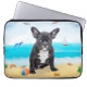 Ein niedlicher Hund am Strand ist eine Geschenkidee für jemanden, der diese Hundezucht Liebe.