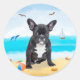 Französischer Bulldog am Strand Runder Aufkleber
