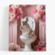 Die Kunst eines verspielten französischen Bulldoggen, der eine Badpause in einem mit schönen Blume gefüllten Badezimmer genießt. Dieses charmante Kunstwerk verleiht Ihrem Raum eine Touch von Wärme und Persönlichkeit, die ihn einladend und fröhlich macht.