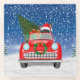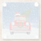 Französischer Bulldog Autofahrer im Schnee Weihnac Glasuntersetzer