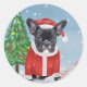 Französischer Bulldog im Schnee mit Weihnachtsgesc Runder Aufkleber