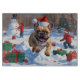 Französischer Bulldog im Schnee mit Weihnachtsmütz Schneidebrett