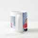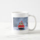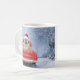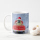 Französischer Bulldog im Schnee sitzend im Weihnac Kaffeetasse