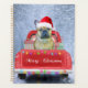 Französischer Bulldog im Schnee sitzend im Weihnac Planer