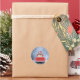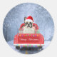 Französischer Bulldog im Schnee sitzend im Weihnac Runder Aufkleber