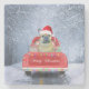 Französischer Bulldog im Schnee sitzend im Weihnac Steinuntersetzer