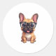 Französischer Bulldog mit Brillen Runder Aufkleber