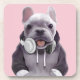Französischer Bulldog mit Headphone Getränkeuntersetzer