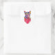 Französischer Bulldog mit rotem Herzen bunt Quadratischer Aufkleber