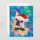 Die französische Bulldog-Rasse hat eine Aquarellfarbe eines französischen Bulldog-Hundes mit einem roten Weihnachtshut, einem roten Weihnachtskragen und einer galaxischen Wasserfarbe.