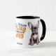 "You Make My Schwanz Wag" erklärt diese niedliche Tasse. Auf jeder Seite sitzt ein bezaubernder schwarzer, französischer Bulldog Welpe. Niedlich für den französischen Besitzer oder Fan! Sie können in der unteren Mitte einen Namen hinzufügen oder den Text löschen, wenn Sie möchten.