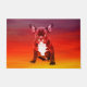Ein niedlicher, französischer Bulldog Hund sitzend mit farbenprächtigem Hintergrund, eine Geschenkidee für jemanden, der diesen Hund züchtet.