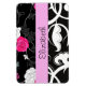 Elegante, stilvolle und raffinierte Blume und Damast-Muster in Schwarz, Weiß und Rosa. Modernes und trendiges Geschenk, perfekt für den Musterliebhaber in Ihrem Leben. Personalisieren Sie diese durch Hinzufügen von Namen, Spitznamen, Monogramm oder Initialen.