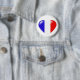 Knöpfen Sie mit einer Illustration einer Herzform mit den Farben der französischen Flagge, mit einem Blick 3D und Reflexionshöhepunkten.