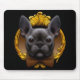 Französisches Bulldog-Illustrationsporträt mit goldfarbenem Bilderrahmen und brauner Schlips mit beigen Polka-Punkten
