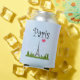 Eine Dose kühler mit einem skurrilen zeichn des Eiffelturms, umgeben von grünen Bäumen und einem rosafarbenen Wasserfarbenherz, das in der Luft schwebt.