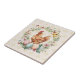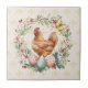 Dekorative Kachel - Henne/Huhn Blumenzene auf hellbraunem Lilie Hintergrund. Es ist eine Keramik, die auch als Untersetzer oder dekoratives Kunstwerk verwendet werden kann.