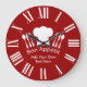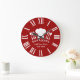 Klassische Rot-Weiß-Uhr für die Küche des Restaurants oder Gourmet-Kochs mit Hut oder "Toque" und Silbergeschirr eines französischen Koch.