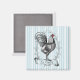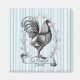 Das französische Rooster Le Poulet ist ein winterliches Bild eines französischen Bauernhofroosters auf aquamarin-blau-weiß französischem Baumwollticking.