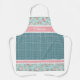 Hübsche niedliche Rosenmuster in Rosa auf kleinen weißen Polka-Punkten, ein französisches ländliches kariertes Motiv auf aquamarinem, blau grünem Hintergrund und weiße geschnitzte Dekorationen. Mit Raum zum Personalisieren oder Anpassen mit einem Namen oder kurzen Text Ihrer Wahl. Einzigartige, hübsche, dekorative, modische und trendige Geburtstagsgeschenke oder Weihnachtsgeschenke für Ihre Lieben, Kinder, Freunde oder andere Familienmitglieder, die Liebe haben, in der Küche zu kochen oder herumzubasteln.