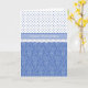 Eine sehr hübsche Geburtstags-Karte, mit dem Gruß der vorderen Abdeckung in der französischen Sprache und in einem mix& Ampere; Ampere; #39; n& Ampere; Ampere; #39; Match Singrünblaues Blumenmuster und blaue Tupfen auf Weiß. Das & Ampere; Ampere; #39; Glückliches Birthday& Ampere; Ampere; #39; Gruß auf der vorderen Abdeckung ist in der weißen Beschriftung auf einem weichen blauen Band, getrimmt mit Imitat-Spitze.