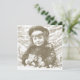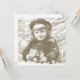 Vintages Foto eines französischen Mädchens, das eine Postkarte hält ... von sich selbst, das eine Postkarte hat. Sie ist für den Winter gebündelt mit ihrer gemütlichen Beret und Mantel gegen den fallenden Schnee und heilig. Bearbeitbarer Text in einem verzierten Vintagen Typografie-Design: Im Text steht: "Alle unsere besten Wünsche für 2021" und "Holiday Greetings".