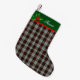 Reizender karierter WeihnachtsStrumpf getan im roten, grünen, schwarzen und weißen traditionellen Fraser Kleidertartanmuster. Die Spitzenfront des Strumpfs ist im Grün, mit einem roten Akzentband unterhalb sie und in den Grafiken eines festlichen grünen und roten Stechpalme Sprig, auf dem links erfolgt. Personifizieren Sie den weißen Text zum Anzug Ihr Bedarf.