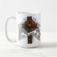 Fraser Clan Tartan auf einem Kreuz mit Engelsflügeln, Weinreben und dem Familiennamen auf einem Banner. Gutes Geschenk für alle Mitglieder des Fraser Clans.