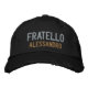 Fratello (Bruder) Persönlich bestickte Kappe, die Bruder bro italienischen sizilianischen Familie. Italienisch für Bruder. Italienischer Bruder, schwarzer Hutdeckel mit grauen und hellbraunen Stickereien