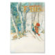 Frau in den Birken, die ihre Langlaufski anzieht. Vintage Wasserfarbe der Kunst von dem schwedischen Maler Carl Larsson.