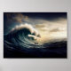 Frau auf einem kleinen Boot, die den Ozean segelt Poster