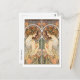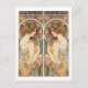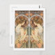 Eine Postkarte mit einer Frau und ihrem gespiegelten Bild auf der Grundlage eines Bildes von Alphonse Mucha