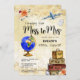 Frau Themed Brautparty. Reisen von Miss zu Mrs. Abenteuer Gepäck Globus Flugzeug Pass Aquarell florale Design.