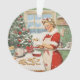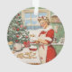 In einer gemütlichen, schneebedeckten Küche wird Frau Claus inmitten von Feiertagsbacken gefangen genommen. In einem festlich roten Kleid mit Pelzärmeln und einer passenden Schürze gekleidet, lächelt sie herzlich, während sie eine neue Serie von Keksen zubereitet. Die Szene ist voll von Weihnachtsjubeln, mit einem wunderschön dekorierten Baum, der mit Bonbons und roten Ornamenten geschmückt ist, während der Schnee leicht aus dem Fenster fällt und die magische Atmosphäre der Saison noch verstärkt.