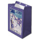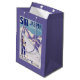 Frau, die offenes Steigungs-Plakat aufwirft Mittlere Geschenktüte