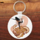 Eine Grafik einer Yoga-Frau vor einem hellen Hintergrund. Dieses Design sieht auf diesem Schlüsselanhänger wirklich effektiv aus