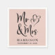 Moderne, personalisierte, rosa Servietten für Ihren Hochzeitsempfang oder andere Hochzeitsfeiern mit "Mr. & Mrs." geschrieben in einem großen eleganten Drehbuch und einer Illustration von zwei Herzen vereint. Geben Sie Ihren Namen und Ihr Hochzeitstermin ein.