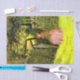 Dieses Design zeigt ein Gemälde des englischen Künstlers Sir John Everett Millais, der einer der Gründer der Pre-Raphaelite-Bruderschaft war. Im Bild wird eine junge Frau, die zentrale Figur, auf bewaldeten Stufen in einer grünen, natürlichen Umgebung dargestellt, möglicherweise in einem Garten oder auf einer Wiese, mit einem Ausdruck, der andeutet, dass sie tief in Gedanken ist. Ihr Blick wird in die Ferne gelenkt, vielleicht gewartet für jemanden oder etwas, das große Bedeutung in ihrem Leben hat. Das zarte Spiel von Licht und Schatten auf ihrem Gesicht trägt zur Atmosphäre der stillen Introspektion bei. Die junge Frau trägt ein rosa fließendes Kleid und eine Motorhaube. Ihre Haltung, die sich leicht zurücklehnt, mit ihren sanft eingeklatschten Armen, verstärkt das Gefühl von wart und Sehnsucht weiter. Das Bild lädt die Zuschauer dazu ein, über die Geschichte hinter der Geduld der Frau und die Emotionen nachzudenken, die sie erleben könnte. Millais erfasst eine universelle menschliche Erfahrung, die das Gemälde bei jedem widerspiegelt, der je die Vorfreude spürte. Das Gemälde zeugt von der Fähigkeit Millais, technische Brillanz mit tiefem emotionalen Ausdruck zu verbinden. Das Originalwerk wurde 1854 von John Everett Millais gemalt.