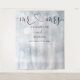 Dieses elegante Herz-Script Winter Hochzeit Foto Stand Kulisse kann mit Ihren Namen und besonderen Datum personalisiert werden. Entwickelt von Thisisnotme©