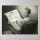 Frau sitzt im Sessel, liest Zeitung, lächelt, (B&W) | George Marks | AssetID: 57539557