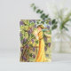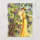 Vintage Abbildung einer jungen Frau in einem gelben Kleid, das neben einer Weintraube mit Traubensammeln stehend ist