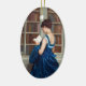 Eine Frau in blauem Gewand hat das Party für die Bibliothek verlassen.