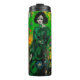 Ein von der KI generiertes Bild einer Frau in einem grünen Kleid, das durch eine grüne Wiese geht