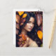 Frau in Herbstlauben, Postkreuzung Postkarte, Postkarte, Postkreuz, Postkreuz, Frau, Portrait Postkarte, Fall, Postkarte, Blätter, KI Generation, Generativität, Jahreszeiten, bezaubernde Postkarte